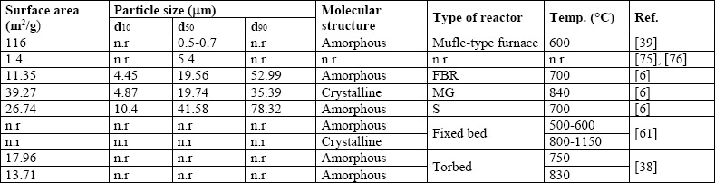 As mentioned in section 1, there are various methods to obtain silica from RH. Figure 2 summarize some of them. Combustion (thermal treatment) allows to produce amorphous RHA depending on the operational conditions, mainly the temperature achieved inside the reactor. Controlled combustion at reasonable equivalence ratios lead to oxidize the carbon and the hydrogen contained in the RH into CO2 and H2O [58]. The reactors commonly used for RH combustion are: fixed bed reactor, moving bed reactor and bubbling fluidized bed reactor (BFBR) [59]. This last technology seems to offer excellent conditions for thermochemical conversion of complex materials with irregular size and shape such as RH. Furthermore, BFBR is commonly used to transform materials with high ash content, low heat value and density [6], [36], [37]. All these characteristics are also typical for RH.