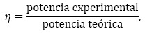 En la Tabla 2 se muestran las eficiencias calculadas para ambos casos, donde se toma como potencia teórica, la potencia nominal que viene especificada por la empresa fabricante, y la potencia experimental, la que se obtiene de las pruebas.