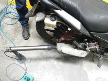 Para la prueba, se realizó el montaje del sensor en la motocicleta (Figura 11) de manera que captara la mayor cantidad de gases del tubo de escape, se midieron los porcentajes volumétricos de los gases contaminantes respecto a la variación de las RPM del motor, y las parte por millón (ppm) de los HC también respecto a las RPM.