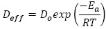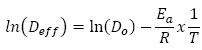 (13) La difusividad efectiva es dependiente de la temperatura por lo que se linealiza utilizando una transformada logarítmica. El valor del coeficiente de la difusividad efectiva es de