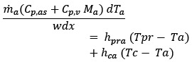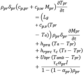 Los elementos de la cámara de secado son cubierta, aire y producto, a continuación se muestra el balance de energía para el aire en la ecuación (4) y para el producto en la ecuación (5).