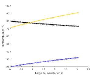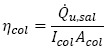 El sistema se resuelve utilizando el algoritmo presentado por Guarin [12], y se determina el rendimiento térmico del colector usando la ecuación (8) El rendimiento del colector se define como la relación entre la potencia que entra en forma de radiación solar y la potencia obtenida a la salida, cuantificada por el flujo másico de aire caliente por el gradiente de temperatura como se muestra en la ecuación (9).