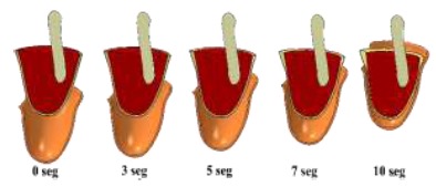 Esta etapa representa el movimiento vertical del socket desde una posición inmediatamente anterior a que empiece el contacto con el muñón hasta una posición final en la que contiene todo el tejido y el hueso en un intervalo de tiempo de diez segundos. Durante el desplazamiento del socket, el tejido blando debe deformarse considerablemente para ser contenido en el encaje, en la Figura 4 se ilustra el proceso de postura del socket.