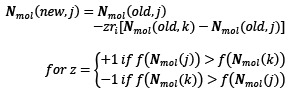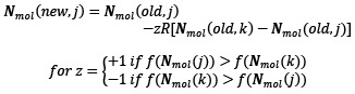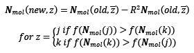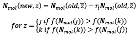 (5) where j=1,2,3,…,n, since n is the maximum number of molecules and k is a randomly select solution from