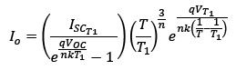 en la ecuación (1) representa la corriente de saturación del diodo que está dada por la ecuación (3).