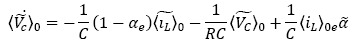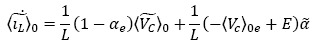 (5) Para linealizar el modelo se establece el punto de equilibrio que permite obtener un modelo en espacio de estados linealizado en un punto de operación con pequeña variación, tal como se muestra en la ecuación (6) y la ecuación (7), donde: las variables de estado se definen para el modelo promediado como
