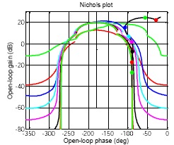 en la frecuencia de interés debe quedar por encima del intercepto de los contornos en cada frecuencia de interés, tal como se muestra en la Figura 5. Esto se logra agregando polos y ceros a la función de lazo
