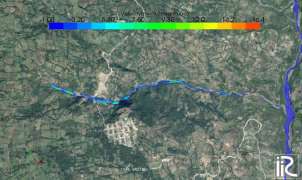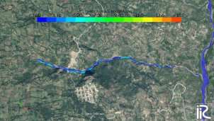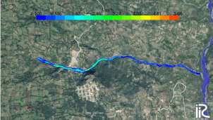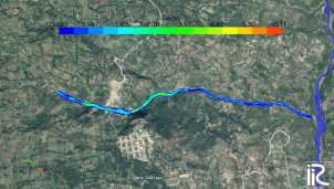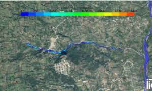 Por otro lado la ocupación máxima del flujo dentro del cauce es de 23.07 ha, alcanzando velocidades de hasta 14.8 m/s tal y como se puede observar en la imagen 5.
