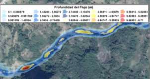 Los hidrogramas de crecidas demostraron un aumento considerable de caudal en cada uno de los periodos de retorno, sin embargo, el promedio para la máxima profundidad del flujo resultante de la simulación con ayuda del software I-RIC mantuvo una diferencia no superior a los 60 centímetros en cada modelamiento.