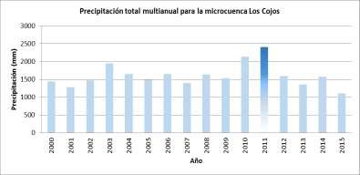 En las figuras 1 y 2 es posible apreciar el comportamiento de la precipitación mensual multianual y total multianual respectivamente.