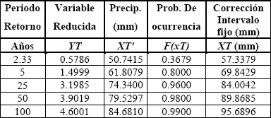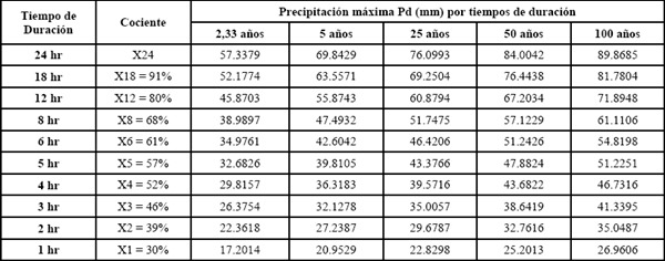 Teniendo en cuenta los coeficientes que se presentan en la tabla 8 se determinaron las precipitaciones máximas