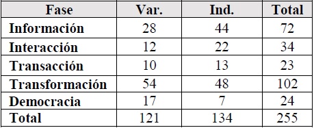 3.4. Análisis de las variables e indicadores propuestos para medir las fases de desarrollo del e-gobierno