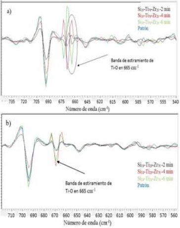 Espectroscopia de infrarrojos también fue usada para corroborar la presencia de fases de titanio y zirconio.