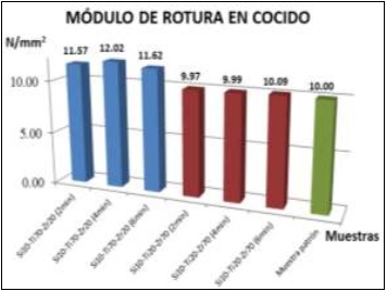 La Figura 6 muestra la variación del módulo de rotura (resistencia a la flexión) para los diferentes tratamientos después del proceso de cocción a 600 °C. Según lo observado en la Figura, los resultados del módulo de rotura de las muestras con el tratamiento Si10-Ti70-Zr20 en todos los tiempos de inmersión, presentan un incremento en el valor de este parámetro comparado con la muestra patrón.