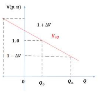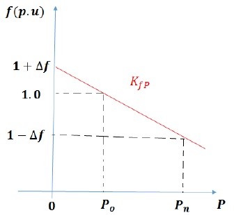 Se realiza control de potencia activa moviendo la frecuencia, esto se logra asumiendo una impedancia puramente inductiva, y calculando el coeficiente del control como la máxima desviación de frecuencia (Figura 2) o voltaje (Figura 3) según sea el caso, sobre la potencia máxima activa o reactiva según corresponda.