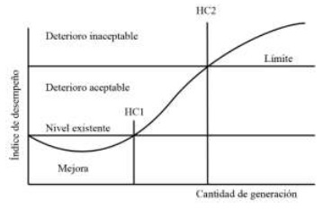 En la práctica, muchos de los índices de desempeño son definidos de forma que un bajo valor en la generación, corresponde a un mejor desempeño. El deterioro se desarrolla al incrementar la cantidad de generación distribuida lo que corresponde a elevar el nivel del índice de desempeño tal como se muestra en la Figura 4.