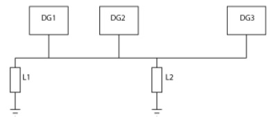 Para el estudio se puede asumir que cada generador distribuido es conectado a un bus por medio de un inversor de voltaje de fuente [30]. El control de bajo nivel de los inversores está basado en un controlador de ganancia droop propuesto en [31] para control en generaciones distribuidas. Se considera una configuración de red con pérdidas de potencia en los alimentadores e integración de energías renovables distribuidas. El problema de despacho económico bajo estas consideraciones, se formula como sigue.