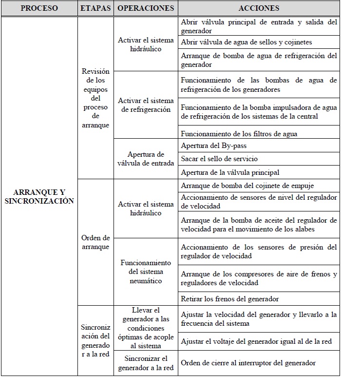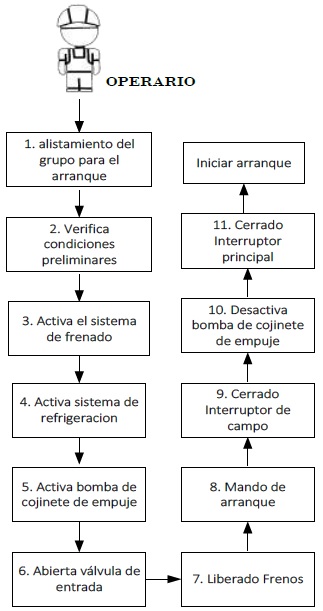 Para realizar el arranque de un grupo turbina-generador debe seguirse una secuencia lógica que permita que éste sea adecuado. Después de efectuado el arranque se procede a la sincronización con el sistema de potencia.