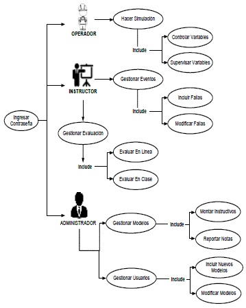 Operador: El operador puede hacer su entrenamiento para manipular y controlar el proceso de generación de energía con la ayuda de las simulaciones y evaluaciones que valoran su aprendizaje.