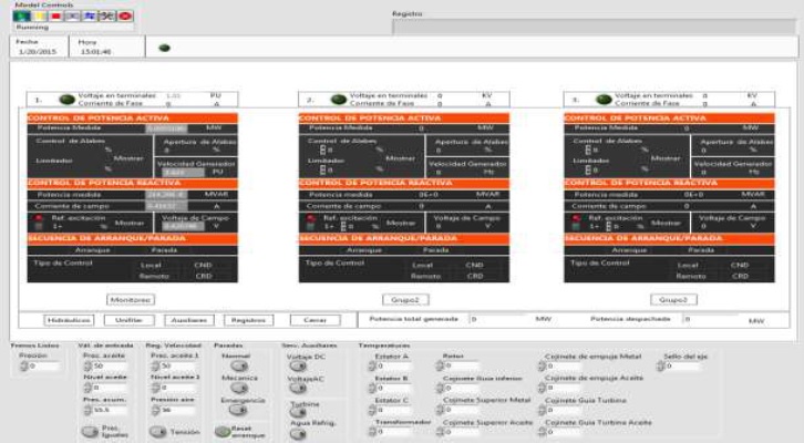 En trabajo previo [9] realizado en la universidad del valle se acondicionaron los modelos del sistema de control de velocidad y excitación mediante el programa Matlab y como LabVIEW no cuenta con un toolbox de sistemas de potencia, se usaron en este trabajo. Esto, para que las interfaces del simulador de entrenamiento desarrolladas en este trabajo, tengan un comportamiento en tiempo real y similar al proceso de generación de energía.