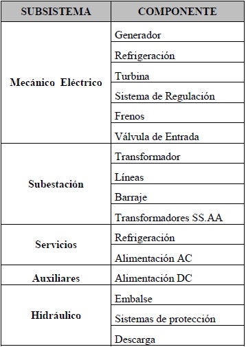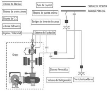 En este ítem, se describen los principales sistemas y equipos que cumplen una función específica, para el funcionamiento y la puesta en servicio del grupo hidroeléctrico. Ver la Figura 2. A continuación en las subsecciones, se realiza esta descripción.