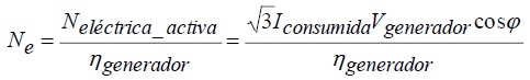 [8]Es común evaluar el rendimiento de la planta eléctrica en función de la potencia equivalente en el combustible suministrada al motor de combustión: