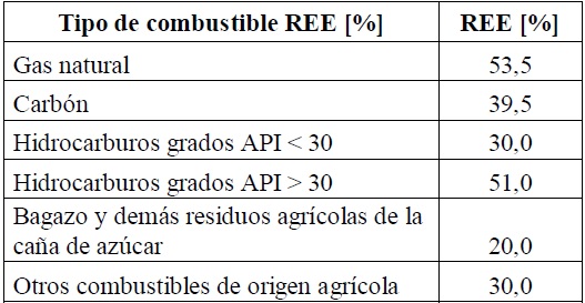 [12]Dependiendo de la normatividad de cada país, se fijan unos límites para incentivar la producción de energía. Como se comentó en el parágrafo anterior, en Colombia, la Resolución 085 de la CREG define los valores del REE requeridos para que un proyecto sea declarado de cogeneración (Tabla I).