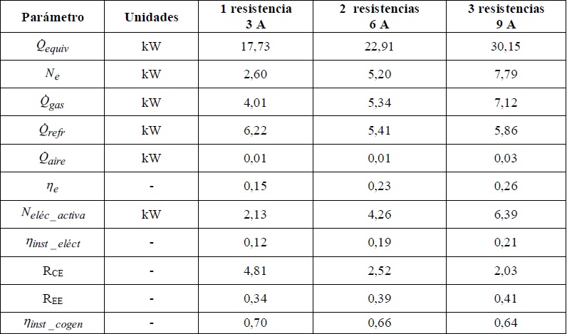 [15]4. RESULTADOS DEL BALANCE TÉRMICO DEL MOTOR Y DE LA VALORACIÓN DE LOS PARÁMETROS DE COGENERACIÓN
