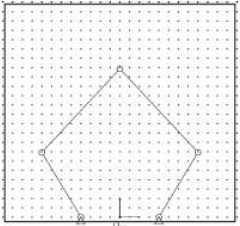 El espacio de trabajo se determina utilizando la técnica basada en el método de Montecarlo. Para ello, se encierra un área de búsqueda, la cual puede ser definida como un área levemente mayor al tamaño de la mesa de corte requerida. Se selecciona un conjunto de puntos dentro del área, que en este trabajo se realiza mediante dos procedimientos. El primer procedimiento se basa en generar una nube de puntos igualmente espaciada en x e y, ver Figura 2. Para determinar el espacio entre la nube de puntos, se hizo un estudio de la precisión en estimar el área en función del número de puntos utilizados.