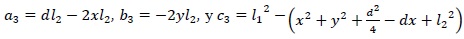 Para verificar si el punto es alcanzable (Wij=1) o no por el robot debe tenerse en cuenta que las ecuaciones (6), (8)-(10) tiene solución factible siempre y cuanto el argumento de la raíz cuadrada sea positivo. Esto es,