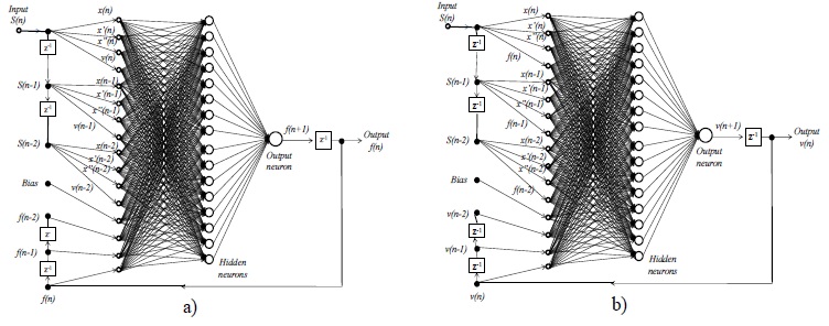 The first control strategy to be described is a controller based on a predictive model and an inverse dynamic model. These models were developed by NARX-type (nonlinear autoregressive exogenous model) artificial neural networks (ANN) that are based on a nonlinear autoregressive model with exogenous inputs. These networks are of a type of recurrent network with global feedback links and whose basic construction block is based on multilayer perception. This type of network is commonly referred to in the literature as a dynamically managed recurrent network because of their use as inputoutput mapping networks [31]. By definition, the input space of a network of this class is mapped to an output space, causing the network to temporarily respond to an externally applied input signal. Furthermore, the application of feedback links allows the networks to obtain representations of state, which make them proper devices for application to nonlinear dynamic systems with the potential to significantly reduce computational cost.