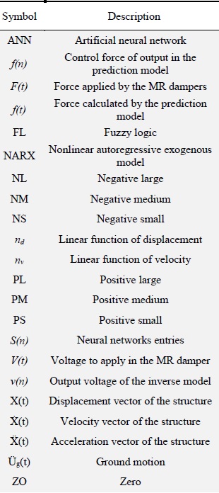 Keywords:Control of structuresControl of structures, Vibration reduction Vibration reduction, Magnetorheological dampers Magnetorheological dampers, Artificial neural networks Artificial neural networks, Fuzzy logic Fuzzy logic.