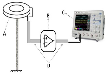 The measuring system is composed by a 1.5 meters height parallel flat-plate antenna, which had two circular plates with diameter of 0.45 m with a separation of 0.03 m. The signals from the antenna were fed into a digital oscilloscope Agilent DSO6104A using an electronic circuit based on the fast buffer BUF602. The function of the buffer, besides isolating the impedance of the parallel-plate antenna, is to provide the sufficient power to the measured signal to travel through the long coaxial cable and reach the recording equipment without significant losses.