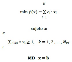 Una vez definida la MD, se procede a formular el nuevo problema de optimización para garantizar la observabilidad en toda la red, incluyendo restricciones de localización de fallas. El objetivo es minimizar el costo del conjunto de monitores de hundimientos de tensión a instalar, tal como se muestra en (6).
