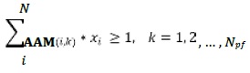En (4) se presenta una formulación alternativa de (3), donde la información topológica de la red permite una simplificación de la AAM [16]–[18]. La nueva matriz simplificada adopta el concepto de Área Topológica de Alcance del Monitor (ATAM). La simplificación consiste en una sustitución de los valores diferentes de cero en la matriz. Esto es derivado teniendo en cuenta que, en un sistema eléctrico radial, las barras aguas abajo de un punto en falla tendrán tensiones residuales muy cercanas a cero.