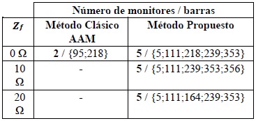 En la Tabla 1 se presentan los arreglos óptimos de monitores, obtenidos por un lado con el concepto clásico del AAM y por otro lado, con el método propuesto en este artículo.