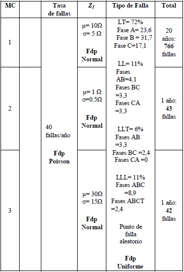 Una vez establecido el arreglo de monitores según la Tabla 1, se evaluó el desempeño en la detección de hundimientos de tensión. Para esto se realizó una evaluación estocástica mediante tres simulaciones de Monte Carlo con las estadísticas presentadas en la Tabla 2. Finalmente se aplicó el factor de observabilidad de hundimientos de tensión FO, mostrado en (7),