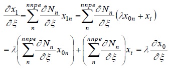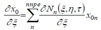 [9]Considering the shape functions Nn(x,h,t) in the interpolation of global coordinates, the first term in J0(x,h,t), and similarly any other term, will be given by: