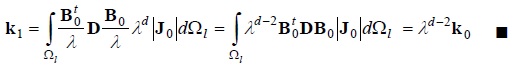 Consequently, for the 2D case where d = 2, k0 and k1 are exactly the same matrices. For the 1D case these matrices will be related by the constant factor 1/l, and by l in the 3D case.