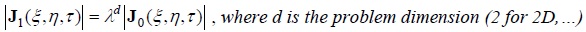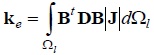 [7]where , D is the elasticity matrix that defines the stresses as s = De, B are derivatives of the shape functions N, Wl is the element domain in local coordinates and J is the Jacobian matrix. The following section will show the relations between the terms used to evaluate ke of geometrically similar elements.