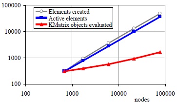 The hierarchical h-adaptive program code notably reduces the computational cost associated to the evaluation of the problem stiffness matrix, but also the cost associated to the computation of any result involving the terms used in the evaluation of the element stiffness matrix (strains and stresses at integration points, volume integrals,…).