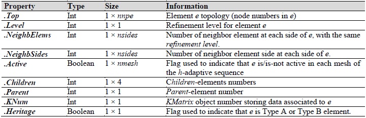 These two relations (element-element, elementboundary) can be inherited by the new elements created during the mesh refinement. The use of this information simplifies and accelerates the refinement process.