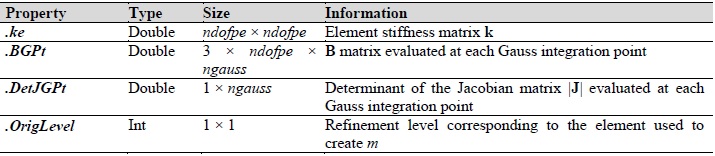 KMatrix: stores data associated to each stiffness matrix. Geometrically similar elements will be related to a single KMatrix object.