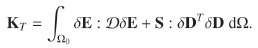 (10) Con esto, la matriz de rigidez tangente se obtiene a partir de (10) considerando la variación del trabajo virtual de las fuerzas internas con respecto a los desplazamientos virtuales y linealizando la ecuación constitutiva,