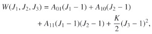 (11)La relación entre el estado de deformaciones y el estado tensional al que está sometido un material se denomina modelo constitutivo del material. Como se ha justificado en puntos anteriores, para el cometido de este trabajo, el modelo constitutivo de Mooney-Rivlin de tercer orden proporciona resultados de suficiente precisión para el caso de estudio considerado. El modelo de Mooney-Rivlin define la densidad de energía elástica de deformación como: