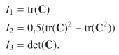 los invariantes del tensor de deformaciones de Green-Lagrange C, definidos como: