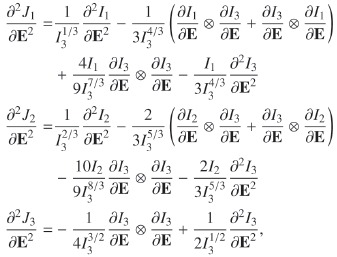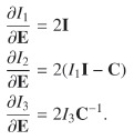 (15)Las derivadas de los invariantes reducidos con respecto al tensor de deformaciones de Green se pueden evaluar como: