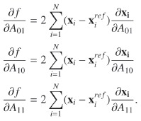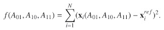 Una vez realizado este análisis previo, se establece la función objetivo (21) como la suma de la distancia euclídea entre las posiciones de los N puntos de control reales (o de referencia) en el hígado deformado con las posiciones de los puntos de control predichas mediante el modelo numérico para ciertos valores de las propiedades elásticas del material,