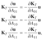 se evalúa en la posición de equilibrio según la ecuación (11). Como se puede observar, el análisis de sensibilidades resulta en un problema lineal ya que se realiza en torno a la posición de equilibrio. Además, teniendo en cuenta (15) y (18) se observa que la matriz tangente depende linealmente de las propiedades elásticas del material. Por ello,