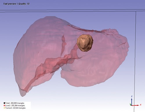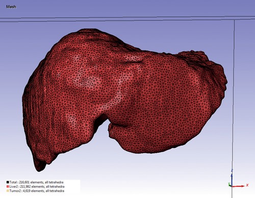 Las técnicas propuestas se han verificado a través de un experimento sintético cuyo punto de partida fue la imagen del hígado de un paciente anónimo en exhalación total, la cual se asumió como el estado inicial del hígado sin deformar, a partir del cual se construyó la geometría del modelo. La imagen del hígado en inhalación total, estado deformado, se usó para obtener las condiciones de contorno de Dirichlet. Dichas condiciones de contorno se han obtenido mediante un método de registro que proporcionó el desplazamiento que habría que aplicar a los nodos de la superficie externa del hígado sin deformar para alcanzar el estado deformado. Para validar el método se escoge un valor de referencia para las constantes del modelo constitutivo y se realiza una simulación MEF, obteniendo así la posición de todos los puntos en el estado deformado. Posteriormente se lanza una búsqueda ciega de dichas constantes con el método de optimización propuesto.